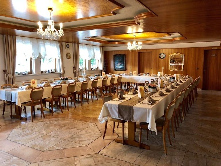 Unsere Gaststätte mit Nebenzimmer ist noch in der ursprünglichen Holz-Einrichtung von 1972 und gerade durch die Gemütlichkeit in diesen Räumen bei den Gästen sehr beliebt.