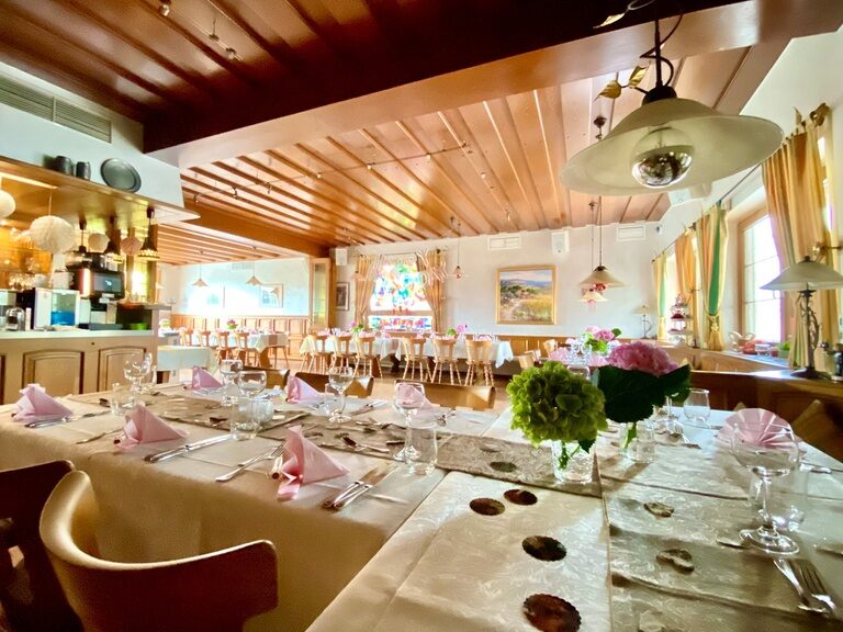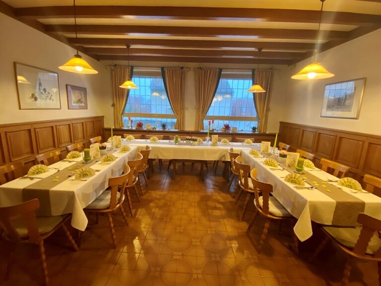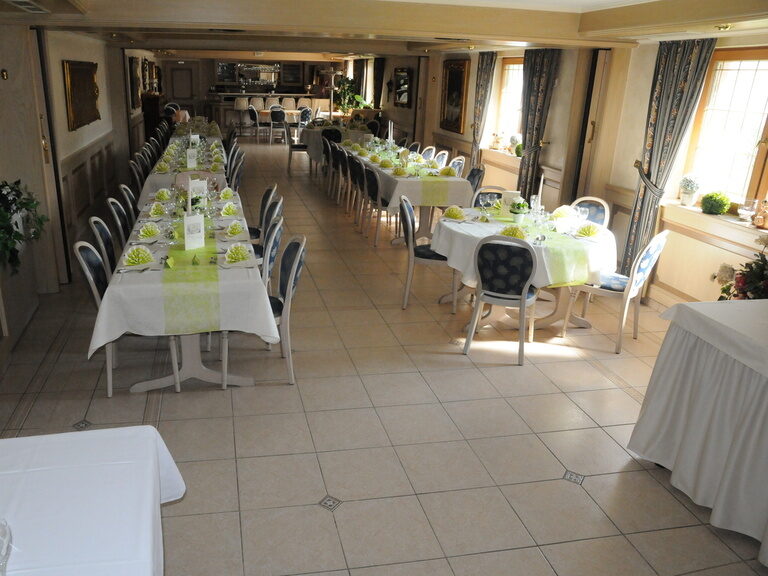 Unser Raum Frühling wird hauptsächlich als Frühstücksraum genutzt, aber auch hier können Sie wunderbar im schönen, festlichen Rahmen feiern.
